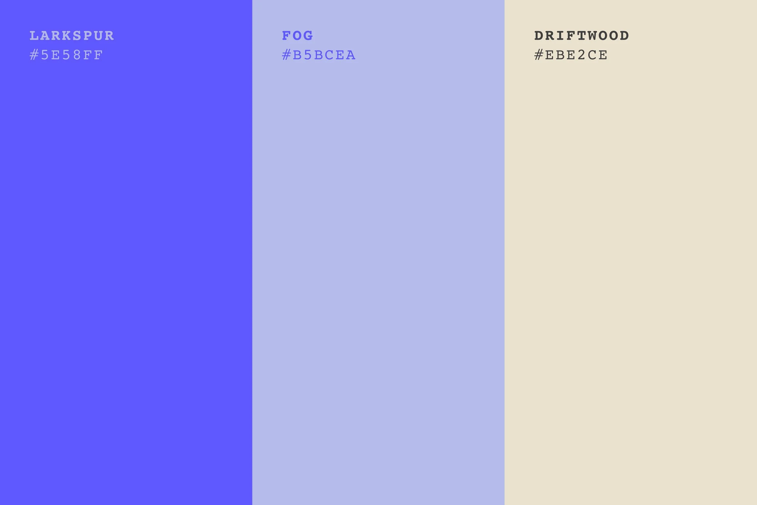 I chose a simple, three-color palette for this project. The colors reflect the vibrant blues of coastline waters and wildflowers, paired with a neutral, weathered wood tone. The blues encourage a sense of serenity, with their warm-leaning hues inspire and energize. Similarly warm in hue, the beige mirrors the natural, light tones found in nature.